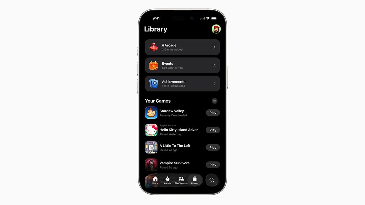 • Truy cập toàn bộ thư viện trò chơi của bạn, bao gồm các bản tải về mới và trước đây từ App Store và Apple Arcade, cũng như khởi chạy khi bạn sẵn sàng chơi.