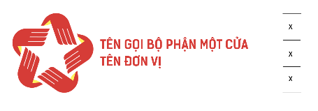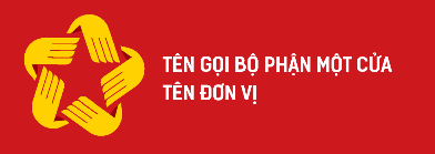 Phần chữ sắp xếp từ trên xuống dưới theo thứ tự: Tên Bộ phận Một cửa, tên đơn vị, khẩu hiệu. Phần tên Bộ phận Một cửa và tên riêng đơn vị được viết hoa toàn bộ, sử dụng font SVN-Kelson Sans Bold và cùng cỡ chữ. Phần khẩu hiệu “Hành chính phục vụ” sử dụng font SVN-Kelson Sans Regular.